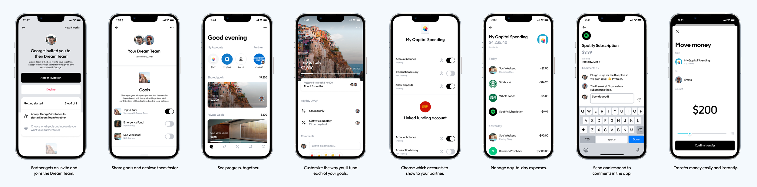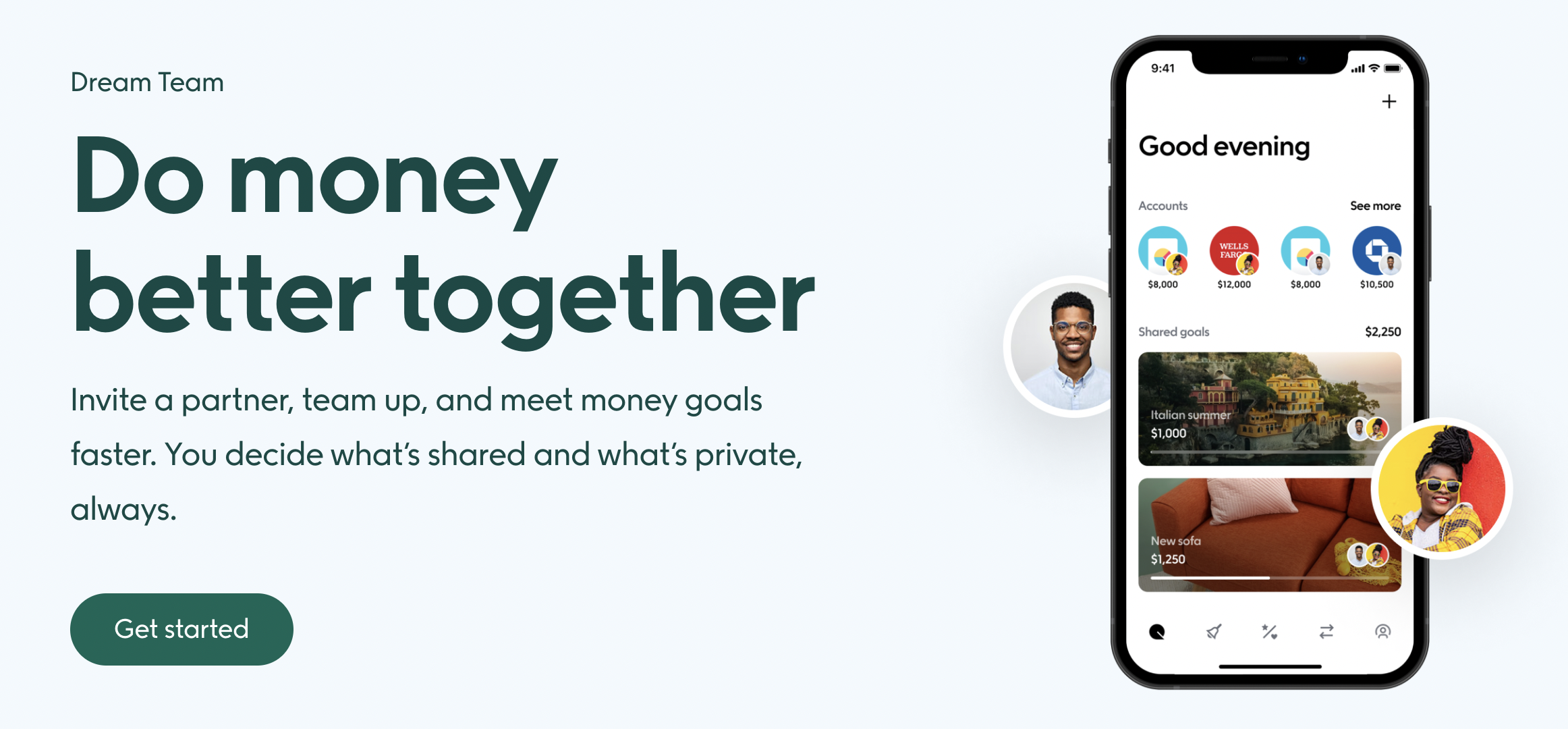 Qapital Dream Team™ helps users team up with a partner to save towards goals together. What makes Dream Team stand out is that it gives couples the feel of joint finances without actually combining accounts. Couples can put money towards a goal, but at the end of the day, the amount they contribute stays theirs.