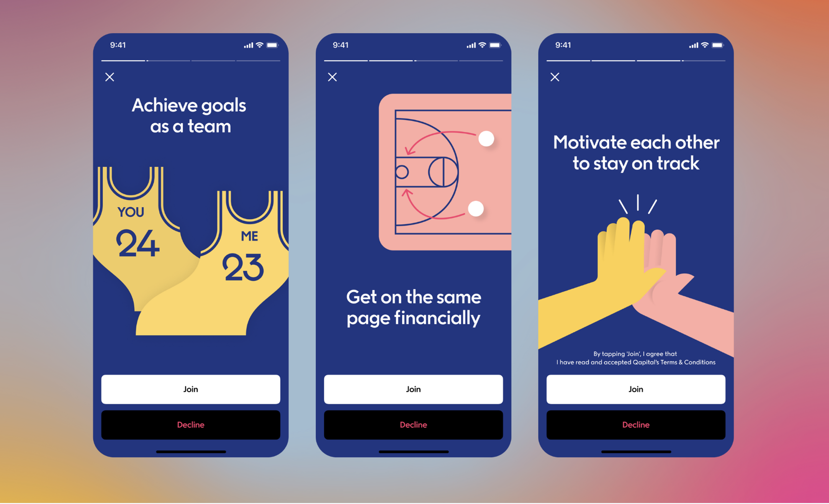 Qapital Dream Team™ helps users team up with a partner to save towards goals together.