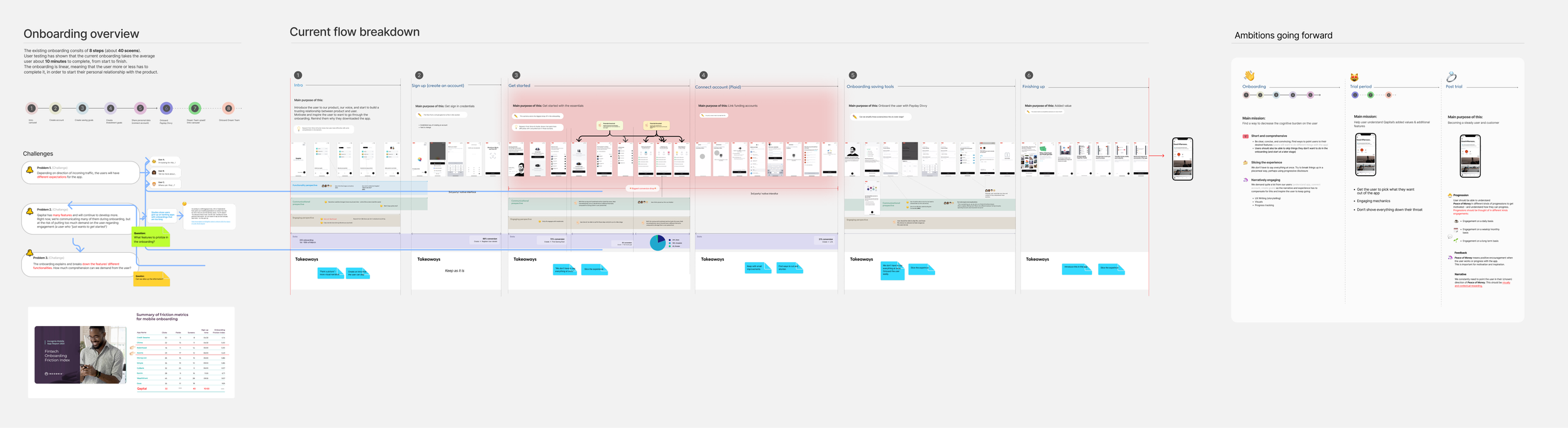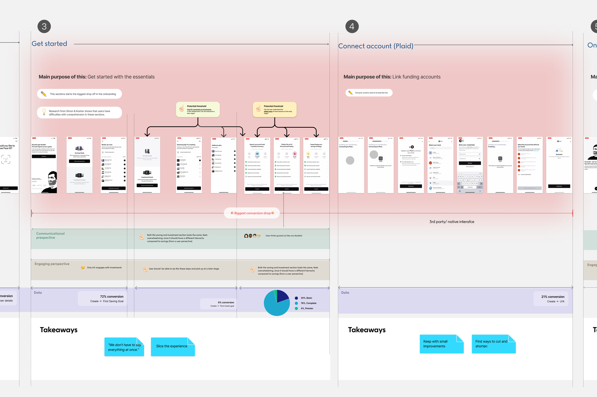 Below is an overview of everything we gathered from user tests. As you can see, the two parts of the Onboarding with the most painpoints are highlighted in red.