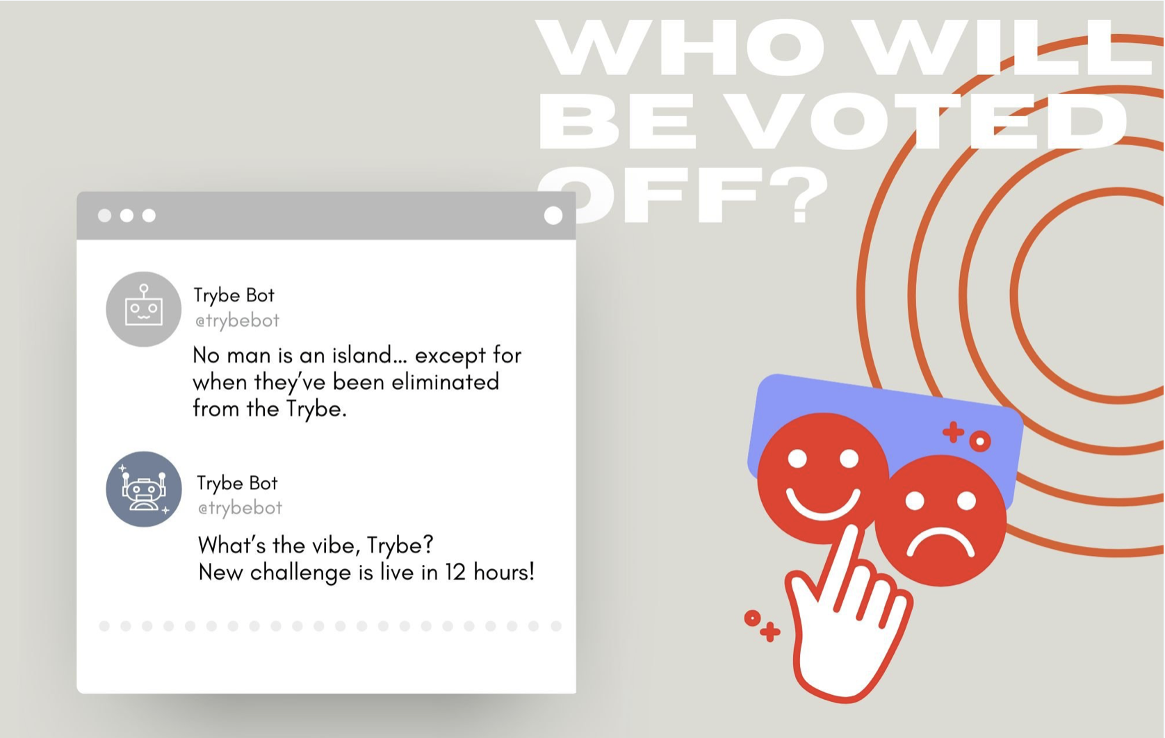 Inspired by the iconic TV show, Survivor, Trybe is an app where users virtually summon their friends to form coalitions and outperform one another at different stay-at-home challenges. Each week, after challenges are submitted, users are tasked with voting off one of their own.